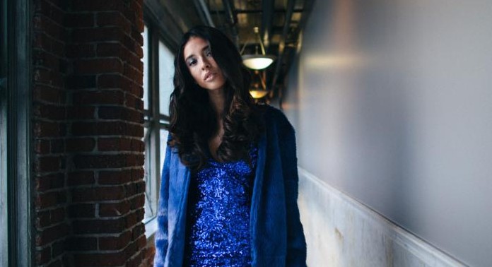 Красивая брюнетка на природе летом