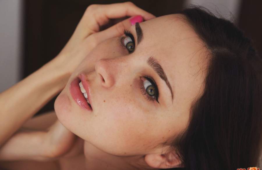 Неповторимо красивая брюнетка со смазливым личиком снимает нижнее бельё перед камерой и оставшись голой показывает свою письку, титьки, и попку.