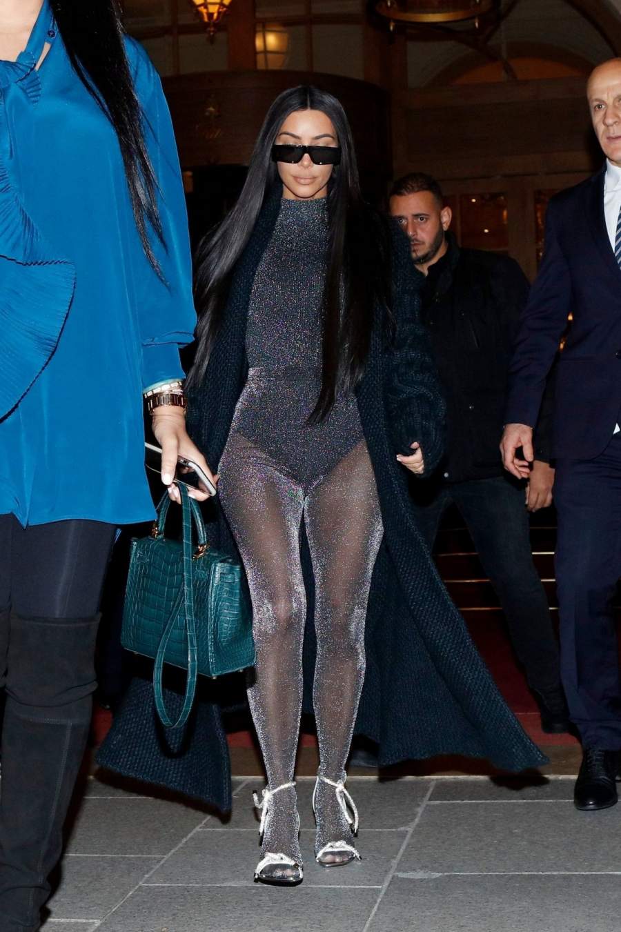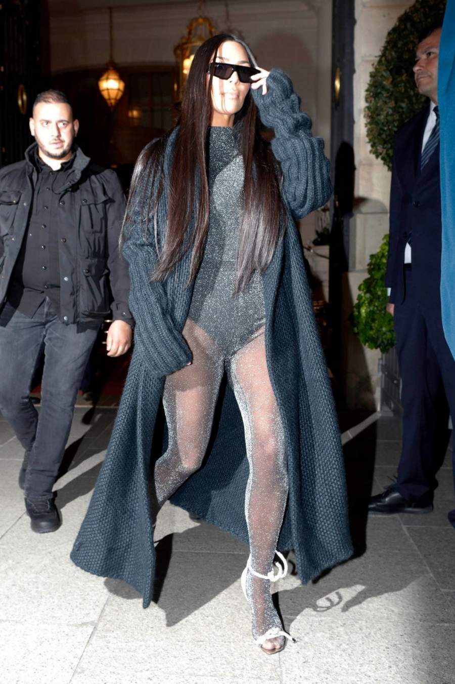 38-летняя южноамериканская звезда реалити-шоу, актриса и фотомодель Ким Кардашян(Kim Kardashian)в уникальном наряде покидает отель в Париже. ![Актриса и фотомодель Kim Kardashian в уникальном наряде]()