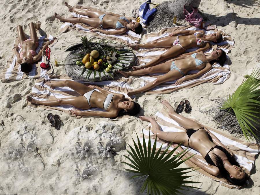 Красотки в купальниках раком