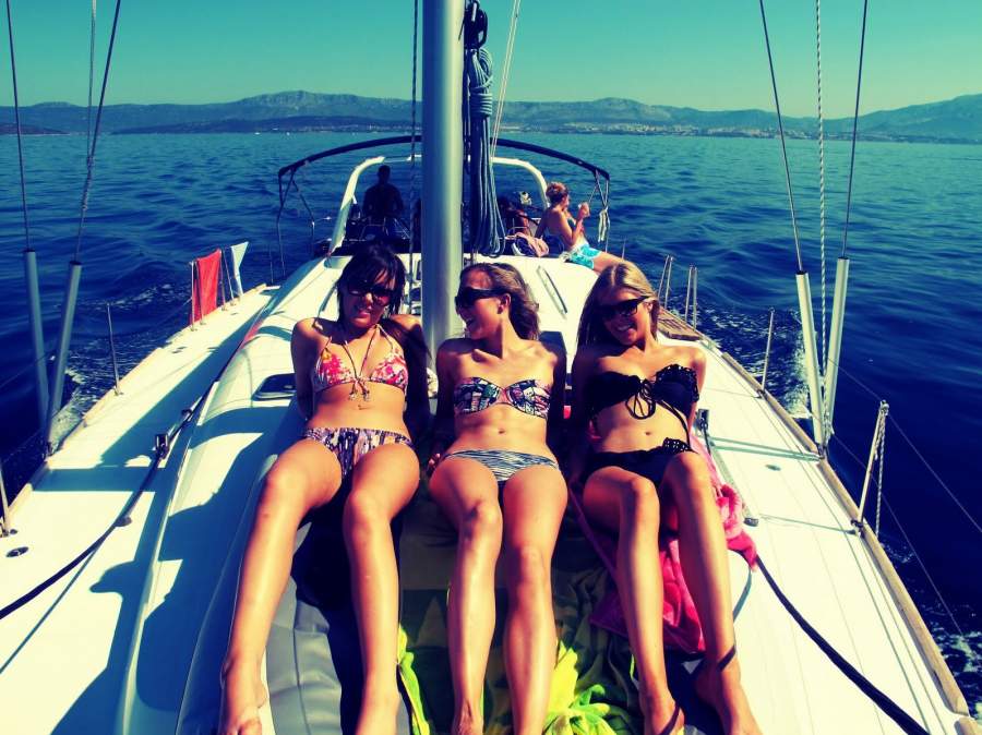 Куча дам на яхте