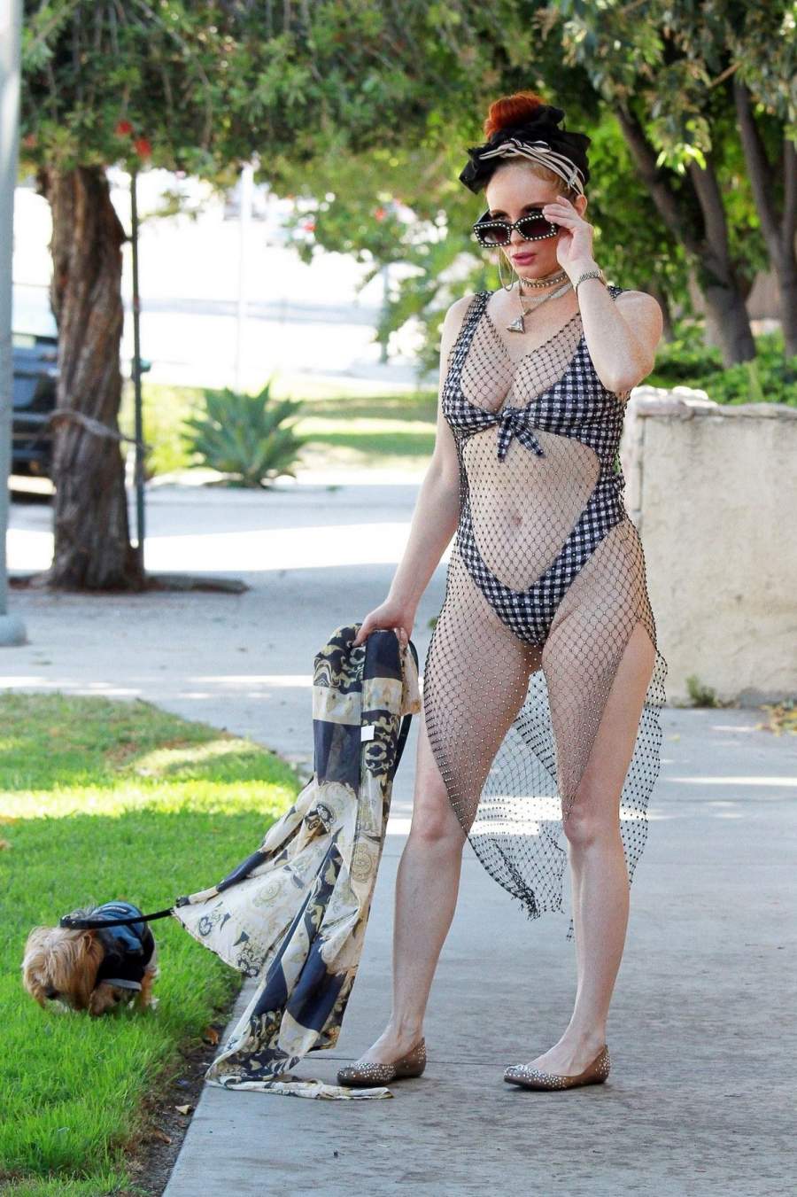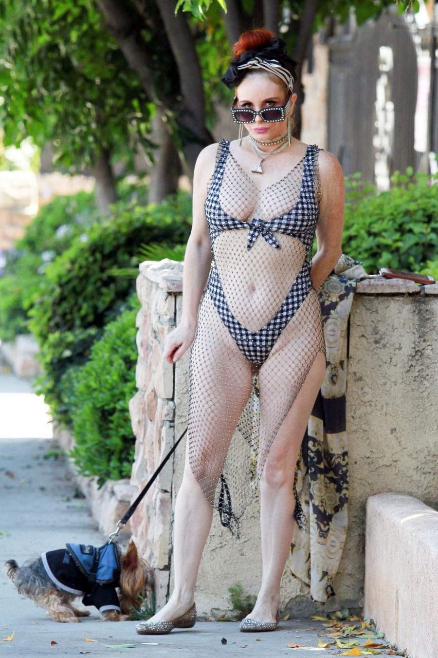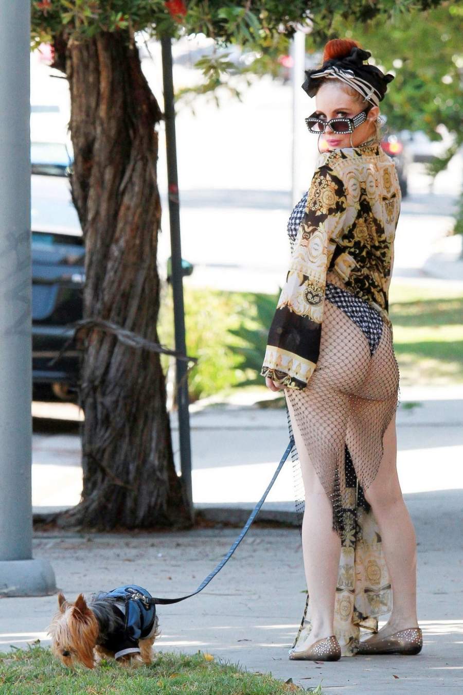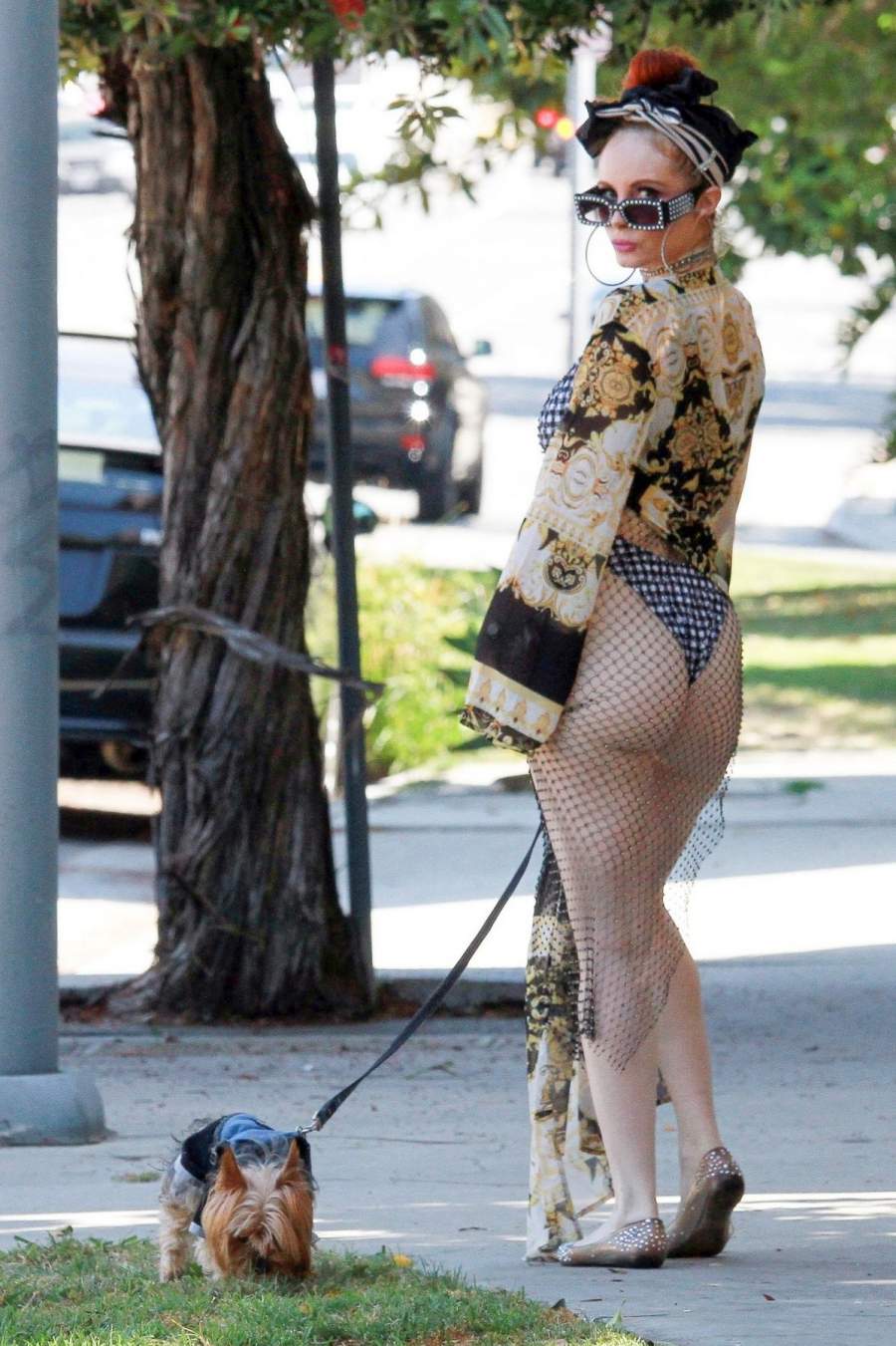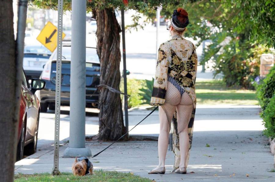 Актриса Phoebe Price в откровенном наряде прогулялась с собачкой