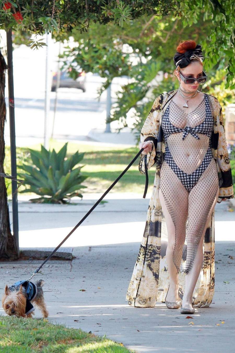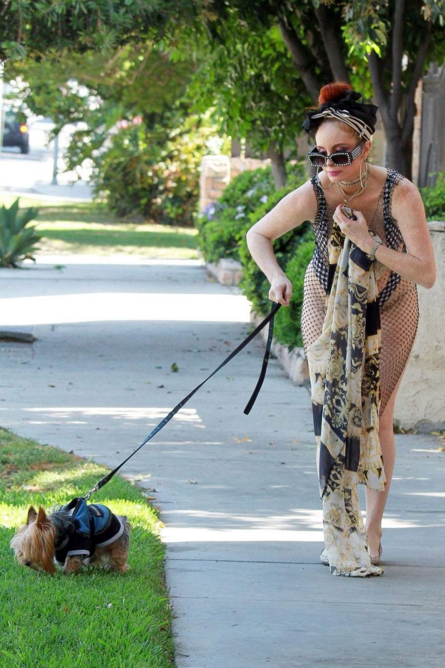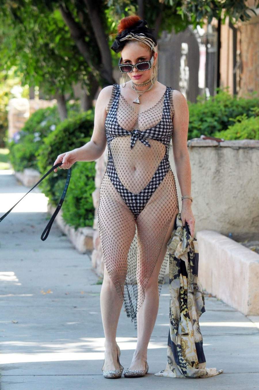 46-летняя южноамериканская актриса Фиби Прайс(Phoebe Price)в откровенном наряде на прогулке с собакой в Лос-Анджелесе. ![Актриса Phoebe Price в откровенном наряде прогулялась с собачкой]()