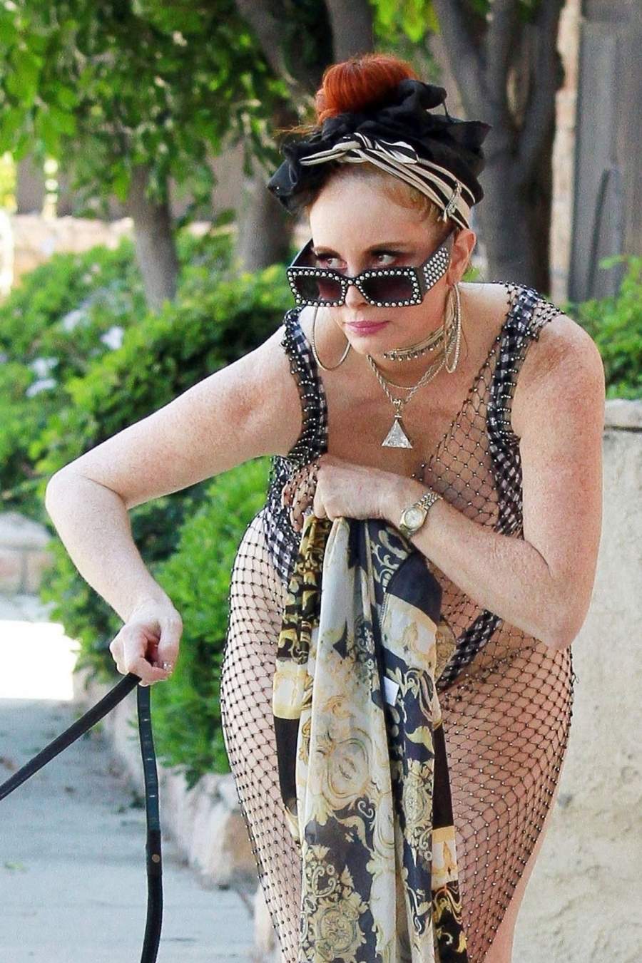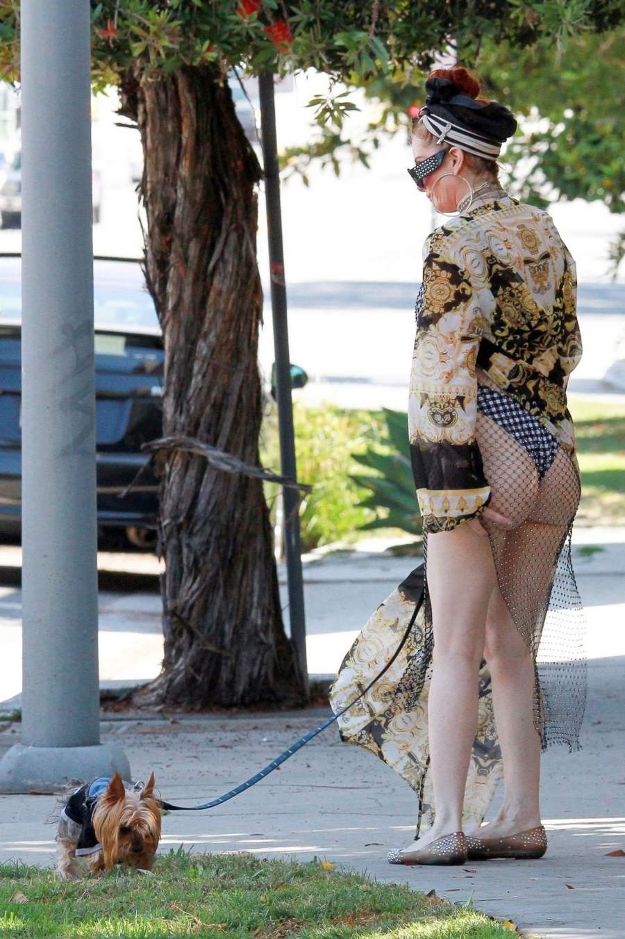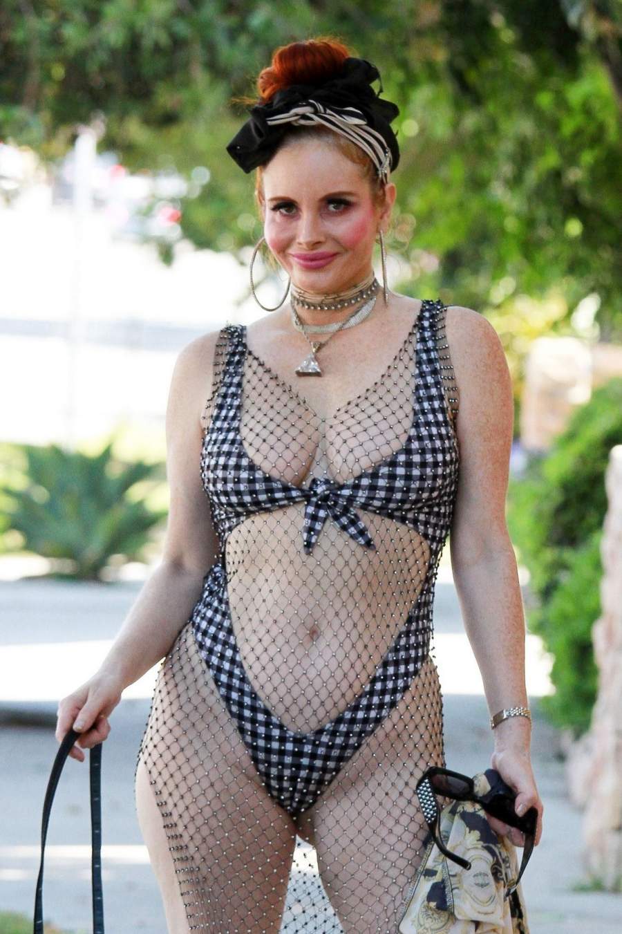 46-летняя южноамериканская актриса Фиби Прайс(Phoebe Price)в откровенном наряде на прогулке с собакой в Лос-Анджелесе. ![Актриса Phoebe Price в откровенном наряде прогулялась с собачкой]()