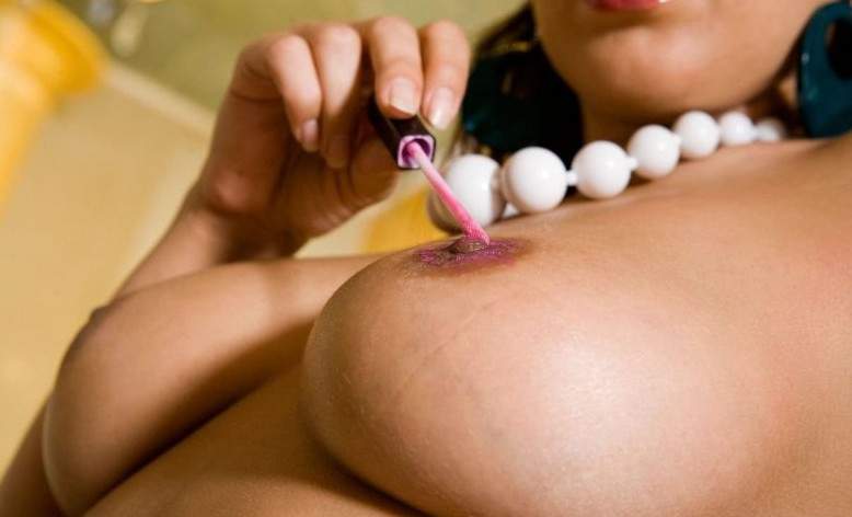 Чтобы не скучать, красивая брюнетка с хорошей фигурой пошла в ванную, чтобы немного дурачиться и сделать несколько откровенных снимков.