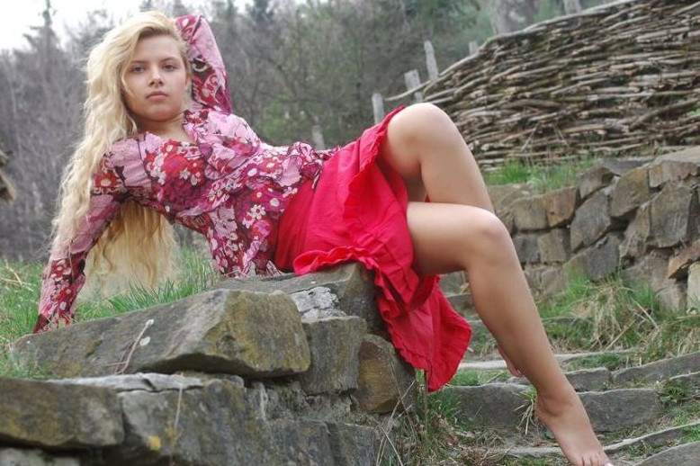 Фото деревенской идиллии: блондинке явно тесно в платье