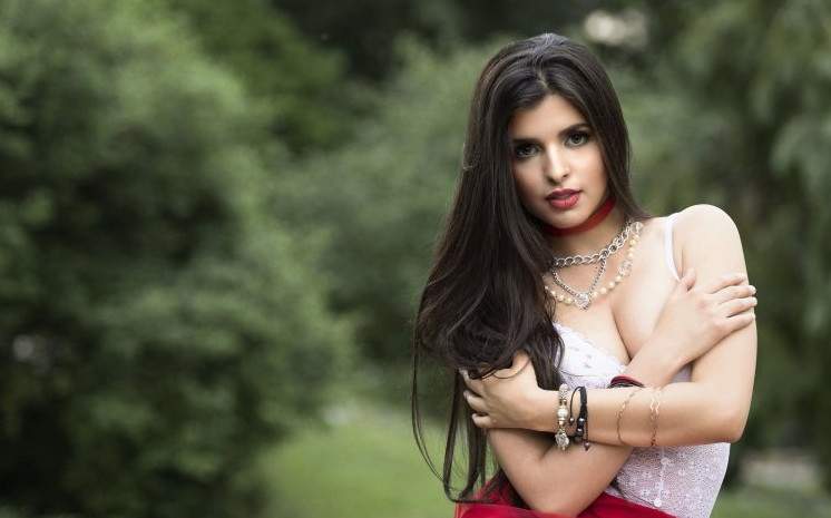 Обольстительная брюнетка с обворожительным бюстом