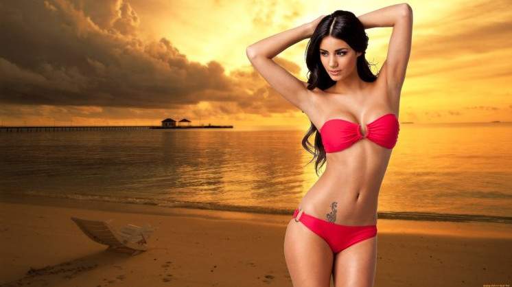 Прекрасная женщина в купальнике.