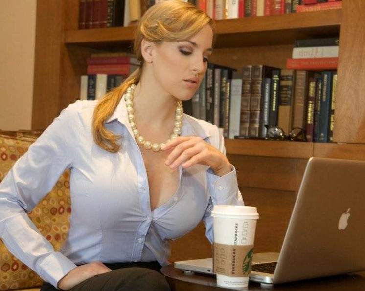 Девушка в блузке с очень большой грудью