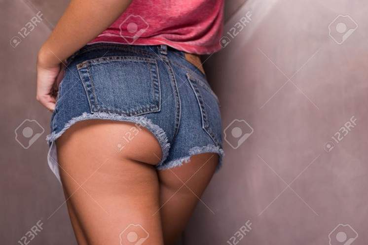 Задница девушки в джинсовых шортах