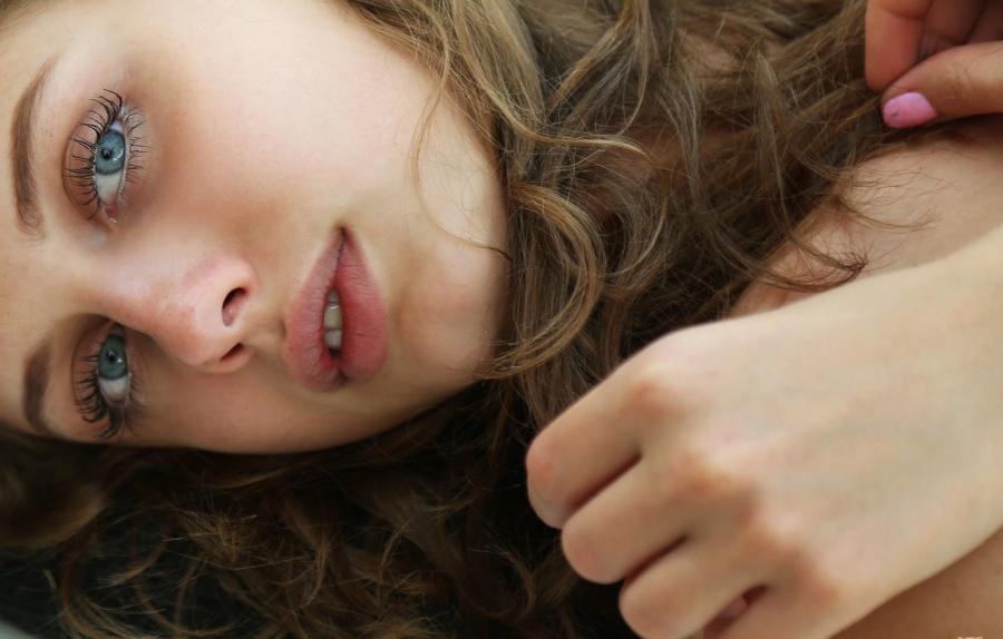 Блондинка с красивыми сиськами позирует голая перед фото камерой