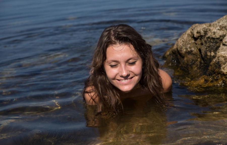 Ого, ну вот красотка, сняла купальник и отважилась плеснуться в океан. Ну и я не могу упустить такой зрелищный момент. А она еще и бритую киску нам всем показывает, да еще и с такими короткими волосиками на лобке. Обожаю женщин, которые ухоженны до кончиков пальцев. Ну и как же она вышла из воды...мокренькая, сексуальная и свежая. Я тут же забыл о своем отдыхе и устроился рядышком, чтобы наслаждаться ее прекрасным телом. Ну а она, не дура, сразу нашла удобную позу на камнях и продолжила наш провокационный флирт. Она такая стройная, что даже поворачиваясь умело показывает свою упругую попку.